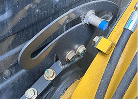 整機(jī)上道時(shí)鋼軌輪對位,且安裝便于更換的橡膠履帶板,防止對線路的道釘?shù)仍斐蓳p傷。